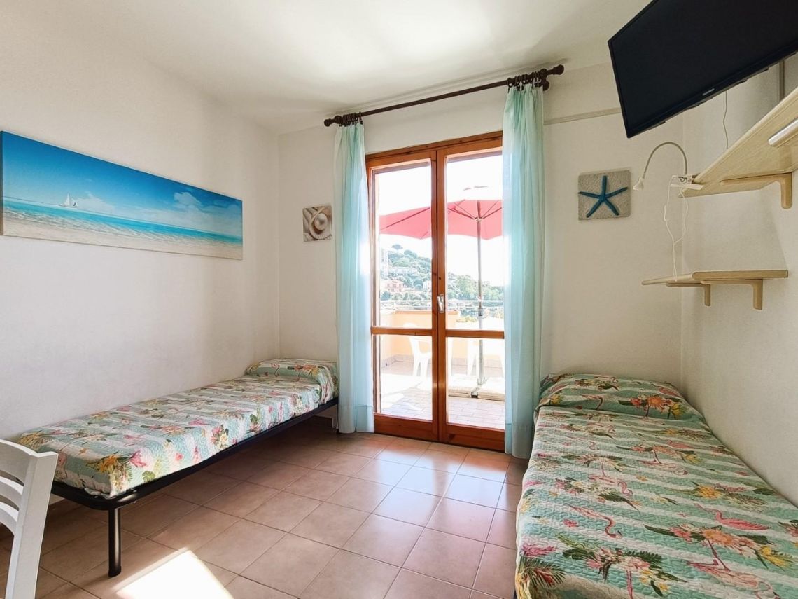 IL Luminosissimo Apparttamento posto al primo e ultimo piano primo di una Piccola Palazzina Ben tenuta e' composto da ingresso indipendente in ampio soggiorno con angolo cottura e uscita sulla Bellissima Terrazza di 11 mq con Incantevole Vista Mare, una camera matrimoniale e bagno con finestra.