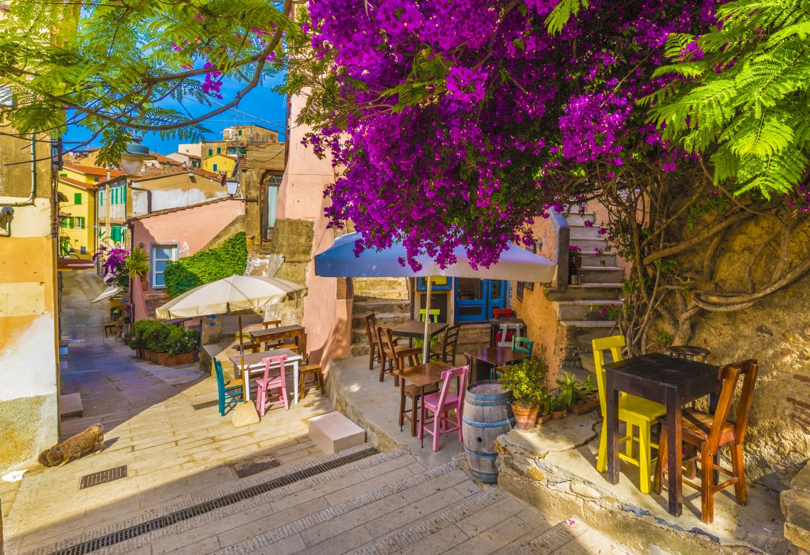 In Pieno Centro nel Grazioso e colorato Borgo Medievale di Capoliveri; splendido Appartamento con Grande Terrazza Abitabile Vista Mare.